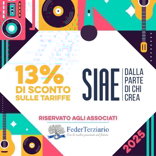 A partire dal 1 gennaio 2025 la convenzione con SIAE – Società Italiana degli Autori ed Editori, prevede, per le imprese associate a FederTerziario, tariffe agevolate con riduzioni del 13% sui compensi dovuti per le utilizzazioni della Musica d'Ambiente.